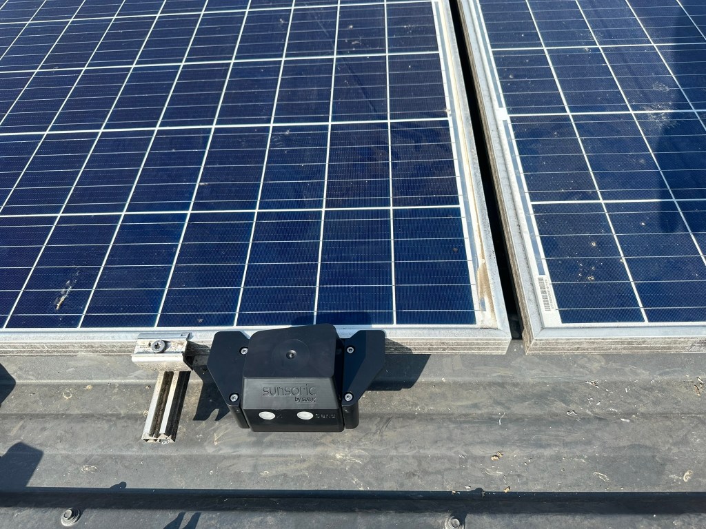 Náš specializovaný robot při práci- šetrně a efektivně čistí solární panely, aby z nich šlo vytěžit maximum výkonu.